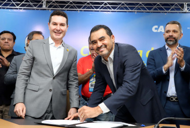 O governador do Tocantins, Wanderlei Barbosa, assinou nesta quinta-feira, 29, no Palácio Araguaia Governador José Wilson Siqueira Campos, juntamente com o ministro das Cidades, Jader Barbalho Filho, prefeitos e representantes de entidades sociais, contratos para a construção de quase 200 moradias nas cidades de Araguaína e Bom Jesus. A ação faz parte do programa Programa Minha Casa, Minha Vida - Entidades (MCMV-Entidades), promovida pelo governo federal, por meio do Ministério das Cidades (MCID), com parceria do Governo do Tocantins. Na oportunidade, também foram assinados contratos do Programa de Aceleração do Crescimento - Fundo Nacional de Habitação de Interesse Social (Novo PAC-FNHIS Sub 50), contemplando 695 novas casas para mais 27 municípios.