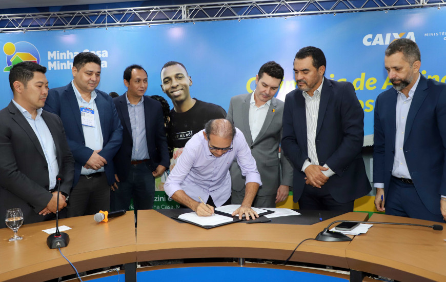 Na oportunidade, foi celebrada a assinatura de Termos de Compromisso do Novo PAC - FNHIS Sub 50, contemplando moradias em 27 cidades para a construção de 695 novas habitações, no valor total de investimento na ordem de R$ 90,3 milhões.