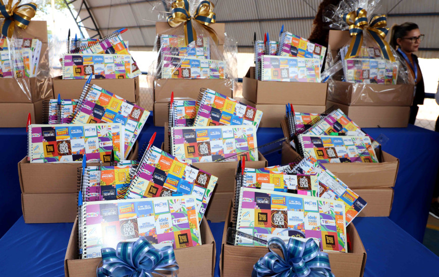 A entrega simbólica de kits de material escolar na Escola Estadual Cívico-Militar Maria dos Reis Alves Barros, no Jardim Taquari, em Palmas, marcou o início do ano letivo na rede estadual de ensino nesta segunda-feira, 3. A cerimônia foi conduzida pela primeira-dama e secretária extraordinária de Participações Sociais, Karynne Sotero, idealizadora da ação em parceria com a Secretaria de Estado da Educação (Seduc), e contou com a presença do governador do Tocantins, Wanderlei Barbosa, e do titular da Seduc, Fábio Vaz.