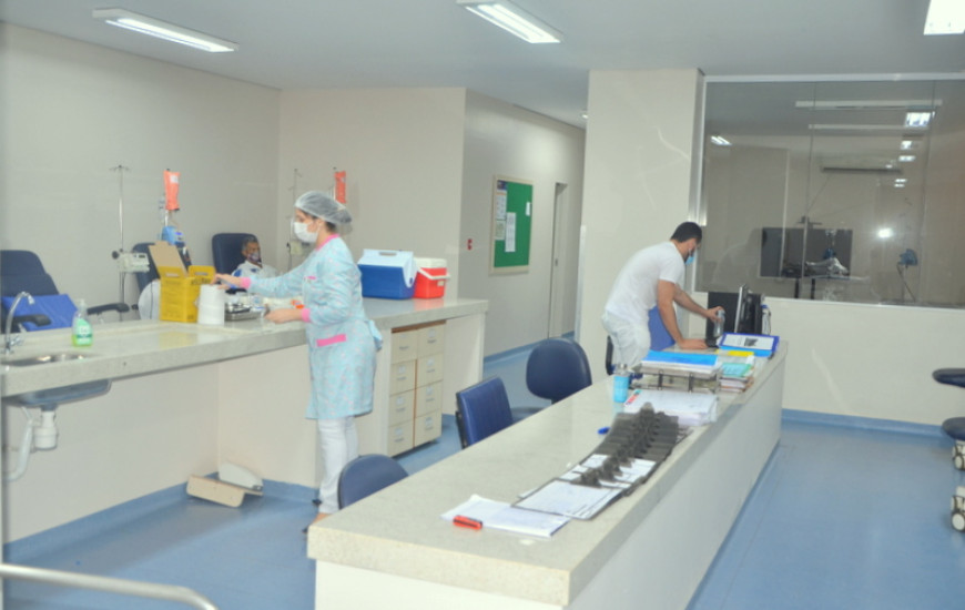 Na nova sala de quimioterapia, o posto de enfermagem ficou mais próximo dos pacientes, além da inclusão de uma sala pediátrica seguindo orientações do Ministério da Saúde. A obra de reforma e readequação foi realizada pelo Governo do Estado, por meio da Secretaria de Estado da Saúde (SES).