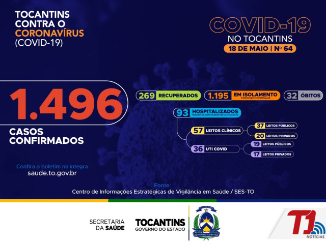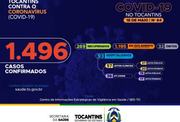 Atualmente, o Estado apresenta 1.496 casos no total, com 269 pacientes recuperados, 1.195 estão ainda em isolamento domiciliar ou hospitalar e 32 pacientes foram a óbito. Dos pacientes internados, 36 estão em UTIs.