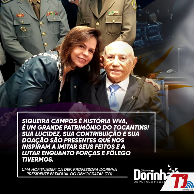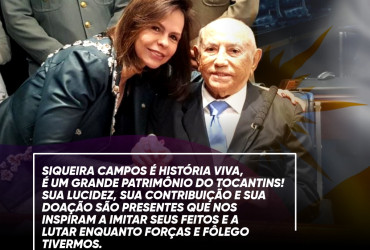 A deputada prosseguiu dizendo que " Siqueira Campos é história viva, é um grande patrimônio do Tocantins! Sua lucidez, sua contribuição e sua doação são presentes que nos inspiram a imitar seus feitos e a lutar enquanto forças e fôlego tivermos".