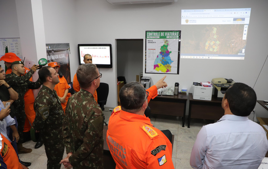 O comandante-geral do Corpo de Bombeiros do Tocantins, coronel Peterson Ornelas, fez uma breve apresentação dos dados de incêndios no Estado. Os dados apontam que o município com maior índice de focos nesta segunda-feira (23) é Lagoa da Confusão, seguido por Pium, Formoso do Araguaia, na região da Ilha do Bananal, além de Mateiros e Rio Sono, na região do Jalapão. Os dados apresentados dão conta que o Tocantins registrou 6.412 focos no mês de setembro, sendo 334 apenas hoje (segunda-feira, 23), o que coloca o Estado na quarta colocação no ranking de incêndios florestais no Brasil. “É uma visita muito oportuna do General Carmona ao Tocantins, que disponibilizou um apoio muito significativo para enfrentarmos os incêndios que assolam principalmente a região oeste do Estado, onde fica a Ilha do Bananal. O Exército já disponibilizou um helicóptero, que está sendo crucial para o transporte de pessoal e equipamentos até os focos de incêndios, garantindo mais agilidade nas operações”, frisou.