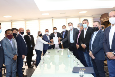 O presidente Paulo Carneiro, o superintendente da Faet, Frederico Sodré, e o presidente do Sindicato Rural de Gurupi, Rafael De Leon, participaram de solenidade no gabinete do governador em exercício, Wanderlei Barbosa, que tratou da assinatura do Protocolo de Intenções com o Banco da Amazônia, representado pelo presidente da instituição, Valdecir Tose e o superintendente no Tocantins, Marivaldo Melo. O evento contou ainda com secretários, parlamentares e representantes das principais entidades do setor privado como Faciet, Fecomércio, Fieto e Sebrae, além da Faet.