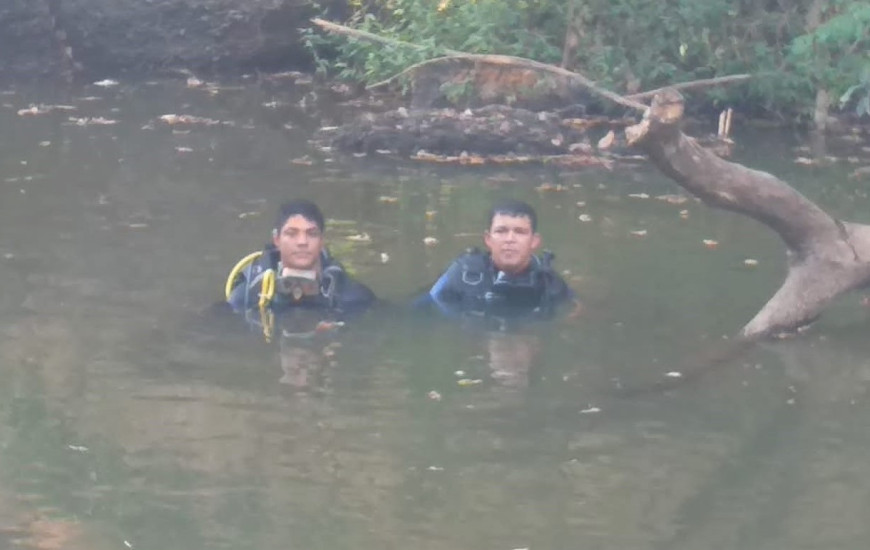 Os mergulhadores executaram as ações no local e encontraram o corpo da vítima às 17h. O ponto onde a vítima estava tinha cerca de três metros de profundidade, água parada e visibilidade zero.