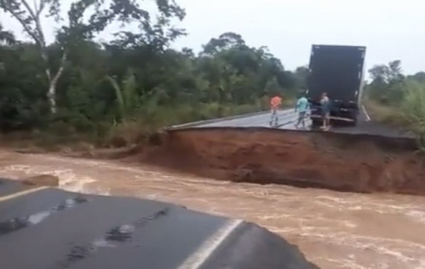Devido as fortes chuvas, na manhã desta quarta-feira, 16, houve rompimento total da BR-226, com interdição dos dois sentidos da via na altura do km 26, entre Estreito - MA e Darcinópolis - TO.