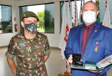 Na sede do 22° Batalhão de Infantaria (22° BI), o gestor foi recebido pelo coronel Carlos Gabriel Brusch Nascimento, comandante do 22° BI, que entregou a honraria da medalha do pacificador, uma condecoração destinada aos militares e aos civis que tenham prestado serviços de relevância em parceria com o Exército Brasileiro. O governador Mauro Carlesse agradeceu pela homenagem, colocando o Estado à disposição dos militares para o desenvolvimento de novas ações em parceria.