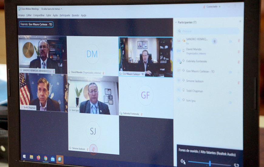 O governador do Estado do Tocantins, Mauro Carlesse, participou nesta segunda-feira, 31, de uma reunião por meio de videoconferência com o embaixador dos Estados Unidos da América (EUA) no Brasil, Todd Chapman. A reunião teve como objetivo discutir oportunidades de negócios em setores estratégicos entre os EUA e o Tocantins. Essa foi a primeira vez que um embaixador daquele país pede audiência com um gestor do Tocantins.