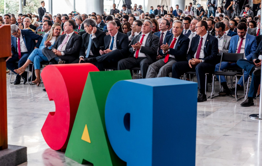 O governador em exercício, Laurez Moreira, participou, nesta quinta-feira, 7, no Palácio do Planalto, em Brasília/DF, da cerimônia de divulgação do PAC Seleções, momento em que o Governo Federal anunciou os projetos contemplados, em todo o Brasil, na primeira etapa do Novo Programa de Aceleração do Crescimento (Novo PAC). Também estavam presentes o secretário extraordinário de Representação em Brasília, Carlos Manzini Júnior, o secretário de Estado das Cidades, Habitação e Desenvolvimento Urbano, Thiago Benfica, entre outras autoridades.