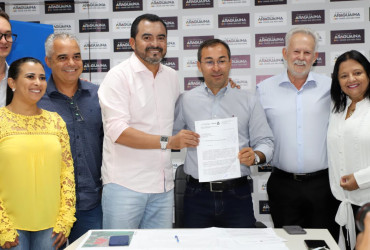 O governador do Tocantins, Wanderlei Barbosa, entregou na manhã desta sexta-feira, 25, ao prefeito de Araguaína, Wagner Rodrigues, o Projeto de Regularização Fundiária (Reurb) da Vila Couto Magalhães, um dos bairros mais antigos de Araguaína. O projeto é fruto do Termo de Cooperação Técnica entre o Governo do Estado e o Tribunal de Justiça do Tocantins (TJTO).