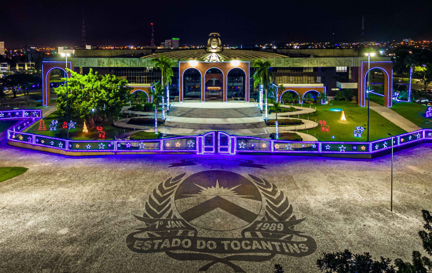 O Palácio Araguaia Governador José Wilson Siqueira Campos, localizado na Praça dos Girassóis, continuará ornamentado com a decoração natalina até este sábado, dia 6 de janeiro. Como parte do projeto Natal de Luzes, a decoração natalina, em toda a área do prédio, está exposta desde o dia 13 de dezembro de 2023, com o início da programação natalina do Governo do Tocantins.