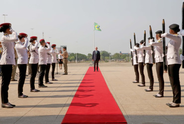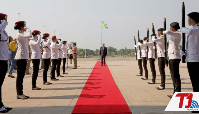A recepção ao embaixador contou com a execução dos hinos nacionais do Brasil e da Irlanda apresentados pelos alunos do Colégio Militar de Palmas.