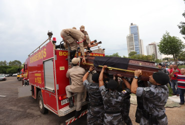 Levado pelos seus colegas da Rotam, o corpo de Américo fez o percurso para o cemitério em carro aberto do Corpo de Bombeiros.