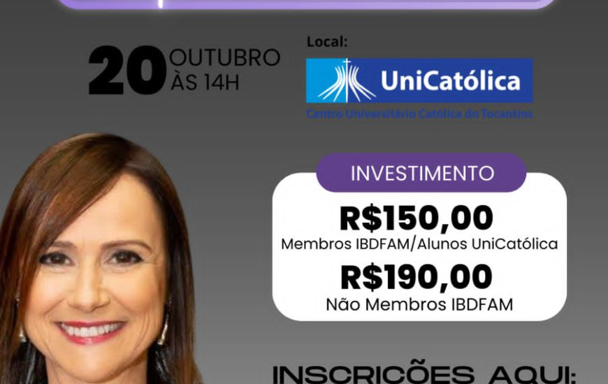 O Instituto Brasileiro de Direito de Família do Tocantins (IBDFAMTO), através da Comissão de Violência e Gênero, recebe em Palmas na próxima quinta-feira, 20, das 14h às 20h, a professora Aline Bianchini para ministrar a "Oficina: Lei Maria da Penha na Prática da Advocacia". O evento ocorrerá no Centro Universitário Católica do Tocantins - UniCatólica.