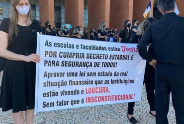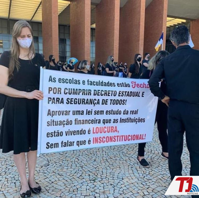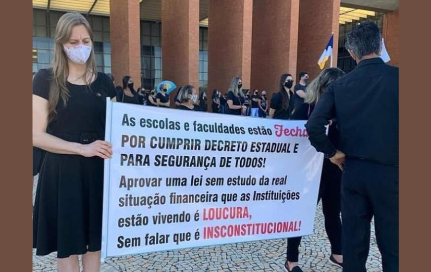 Representantes de instituições de ensino particular do Tocantins realizaram nesta sexta-feira, 26 ,em frente à Assembleia Legislativa do Tocantins, um ato em protesto a lei nº 3.682/2020, sancionada pelo Governador Mauro Carlesse, que dispõe sobre a redução das “mensalidades” da rede privada de ensino.
