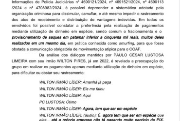 O relatório do ministro também pontua que os investigados teriam utilizado documentos falsos e laranjas para simular entregas e movimentar recursos ilícitos. Investigações apontam transferências suspeitas entre suas empresas e outros investigados, além de saques em espécie que somam mais de R$ 2,5 milhões, caracterizando lavagem de dinheiro e o financiamento de atividades criminosas.
