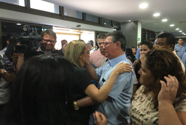 A chegada do corpo do ex-deputado à AL ocorreu em meio a grande comoção dos familiares, amigos e eleitores de Júnior Coimbra. A esposa dele, a vereadora de Palmas Laudecy Coimbra, liberou a entrada das pessoas e recebe o apoio e o carinho de todos. Ela abraça cada um dos presentes que chegam para se despedir. “O Júnior gostava de ver gente e de estar no meio das pessoas. Se existia um lugar melhor para ele era onde tinha muita gente”, disse a viúva de Júnior Coimbra.