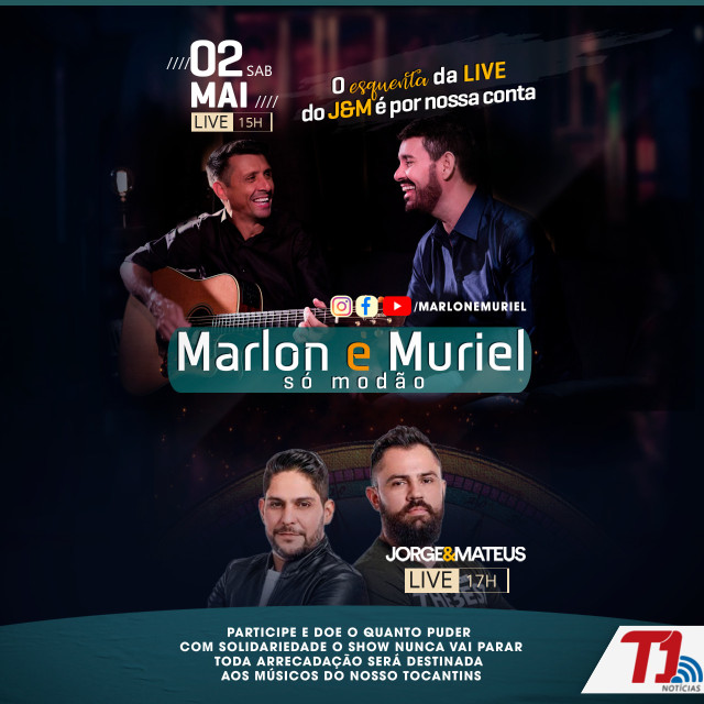 A dupla Marlon e Muriel, dois artistas conhecidos do sertanejo tocantinense, decidiram realizar uma live no próximo sábado (2), intitulada "Com Solidariedade o Show Nunca Vai Parar", para arrecadar doações, que serão destinadas exclusivamente aos músicos de todo o estado e suas famílias. "Sem música perdemos nossa identidade, nossa história e alegria", destacou Muriel.