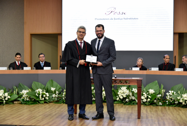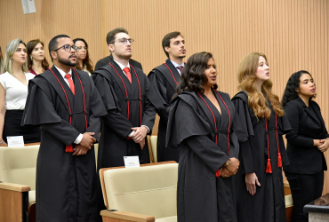 A primeira colocada no concurso, Kamilla Naiser, falou em nome dos empossados: “O ritual desta sessão, a assinatura do termo de posse, as vestes de honra, o regozijo da conquista e os olhares atentos e marejados dos nossos familiares e amigos são elementos que hoje transpõem o rascunho de um sonho antigo, que agora, virou realidade”.