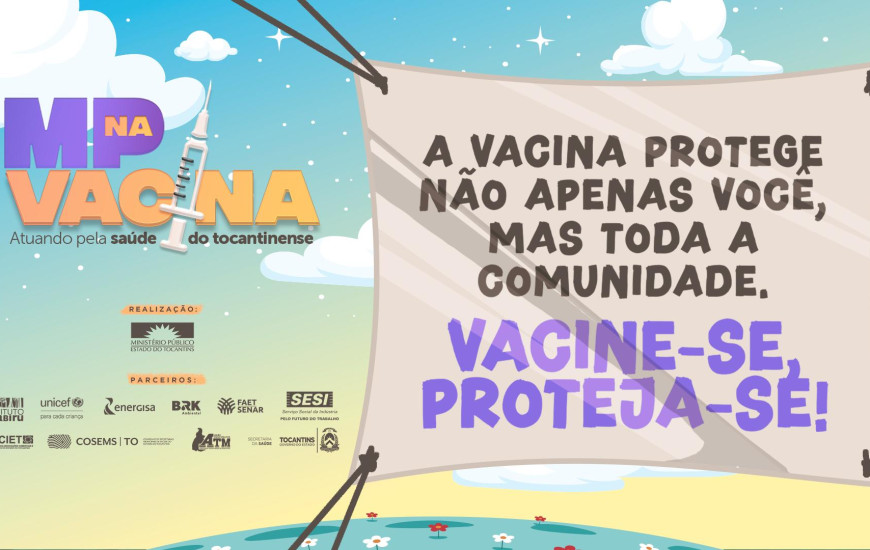 O projeto “MP na Vacina” agrega uma série de iniciativas que buscam o aumento da imunização no Tocantins. Entre as ações estão a divulgação de importantes informações a respeito do tema, como uma peça publicitária veiculada nas principais emissoras de TV e “avisos” emitidos nas contas de água e de energia.