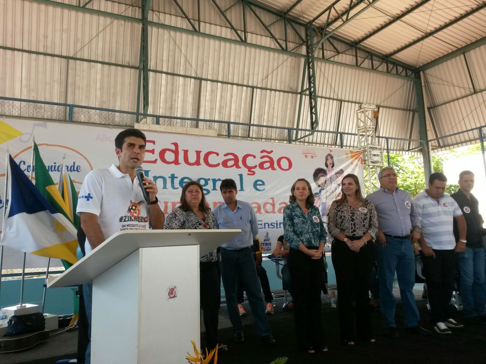 O ministro da Secretaria Nacional dos Portos, Helder Barbalho, está em Gurupi nesta sexta-feira, 19, para participar do dia D de mobilização nacional contra o Aedes Aegypti nas escolas. O ministro foi recebido pelo prefeito Laurez Moreira e pela vice-governadora Cláudia Lelis para evento realizado pelo Governo do Tocantins e marca a abertura oficial do ano letivo de 2016.