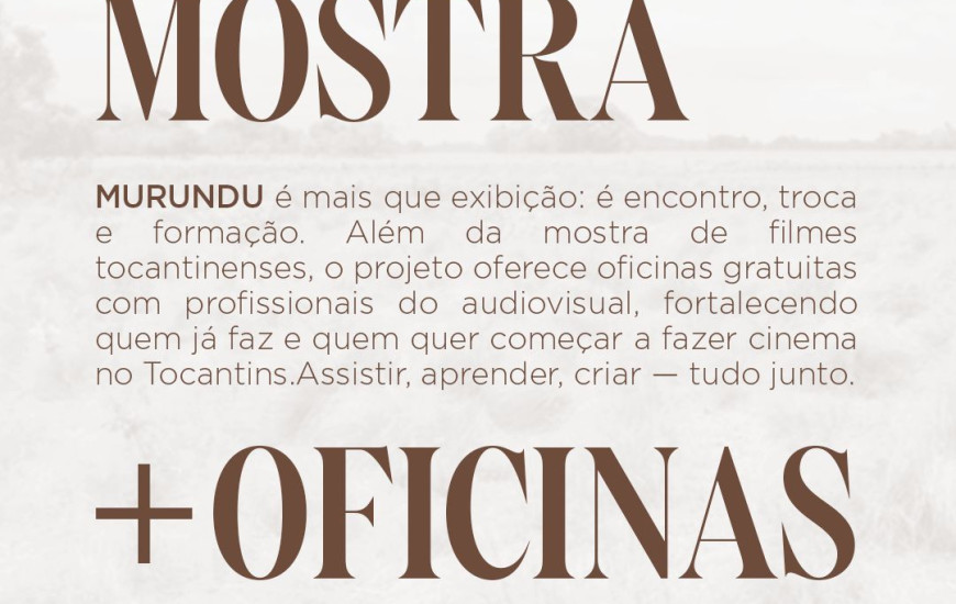 A partir desta segunda-feira, 1º de dezembro, o público de Palmas, Guaraí, Gurupi e Porto Nacional terá a oportunidade de fazer uma imersão no cinema tocantinense. Com foco na visibilidade para a produção cinematográfica tocantinense, a Mostra de Cinema e Audiovisual Tocantinense (Murundum-TO) exibirá 20 curtas-metragens que refletem a diversidade e a criatividade do Tocantins. e.As sessões acontecerão em diferentes cidades do estado, a partir de segunda-feira, 01, com foco na visibilidade para a produção cinematográfica tocantinens