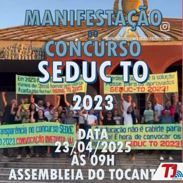 Amanhã, quarta-feria, 23, às 9h, os aprovados no Concurso Público da Secretaria de Estado da Educação do Tocantins (Seduc-TO), regido pelo Edital 01/2023, realizarão uma manifestação em frente à Assembleia Legislativa do Tocantins (Aleto), na Praça dos Girassóis, em Palmas. O objetivo do ato é pressionar o governo estadual pela nomeação dos aprovados, que aguardam há quase dez meses sem convocação. Conforme a Comissão dos Aprovados, a manifestação visa sensibilizar os parlamentares e a sociedade sobre a urgência da nomeação dos aprovados e homologados no concurso.