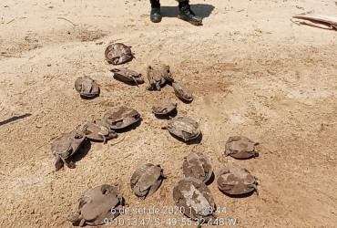 Durante a ação no rio Araguaia, a equipe flagrou dois infratores praticando pesca predatória, não portando licença para exercerem a atividade. No acampamento, dos referidos pescadores, foram apreendidos 17 quelônios - tartaruga da Amazônia (Podocnemis expansa), que estavam presos em um saco; uma caixa de isopor com 35 quilos de pescado de várias espécies e 480 metros de redes de pesca. Os dois foram autuados por crimes ambientais. A multa aplicada pela captura dos quelônios foi de R$ 85 mil e R$ 1,9 mil pela pesca ilegal.