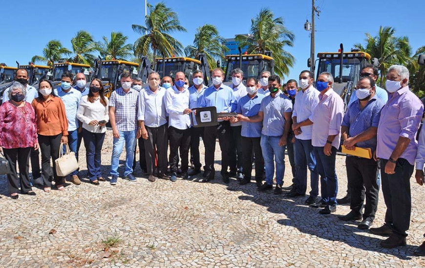 Participaram da cerimônia de entrega do maquinário nesta quinta-feira, 9, os prefeitos de Aguiarnópolis, Ivan Paz; Angico, Deusdete Pereira, o Nego D’água; Bandeirantes do Tocantins, José Mário; Barra do Ouro, Raimunda Virgilene, a Lena; Bernardo Sayão, Maria Benta, a Dona Bentinha; Brasilândia do Tocantins, Ricardo Dias; Campos Lindos, Jessé Caetano; Chapada da Natividade, Joaquim Urcino; Figueirópolis, Fernandes Rodrigues; Ipueiras, Caio Augusto; Itapiratins, Sandro Souza; Luzinópolis, Gustavo Novato; Maurilândia do Tocantins, Leoneide Sobreira; Muricilândia, Alessandro Borges; Oliveira de Fátima, Gesiel Santos; Pium, Valdemir Barros; Ponte Alta do Tocantins, Kleber Rodrigues, o Kleber do Sacolão; Porto Alegre do Tocantins, Rennan Cerqueira; Santa Fé do Araguaia, Oídio Gonçalves; São Bento do Tocantins, Ronaldo Parente; e Tabocão, Wagner Farias, o Vaguim do Valdomiro; além do Chefe de Gabinete da Prefeitura de Novo Jardim, João Luís Moraes; do secretário de Transportes de Dois Irmãos, Jaildo Costa Silva; e da secretária da Fazenda de Tupirama, Nágila Poliana.