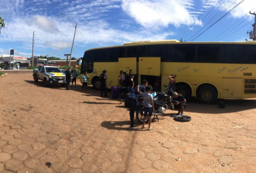 No bagageiro do ônibus, foram encontradas duas motocicletas desmontadas, com combustível, um flagrante risco à vida dos passageiros.
