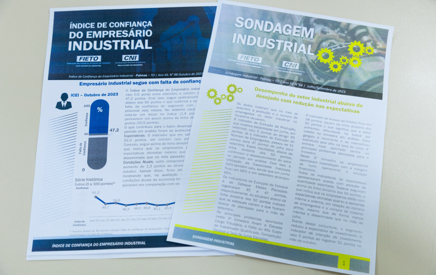 Apesar da pequena queda de 0,5 ponto entre setembro e outubro (passou de 47,7 pontos para 47,2) o Índice de Confiança do Empresário Industrial (ICEI) mostra que o segmento permanece pouco confiante em relação aos próximos seis meses. Apurado mensalmente, o ICEI do mês de outubro mostrou recuo na confiança do empresário tocantinense da indústria ao permanecer abaixo da linha divisória dos 50 pontos pelo segundo mês consecutivo. Em comparação com o mesmo período de 2022, houve queda significativa de 14 pontos.