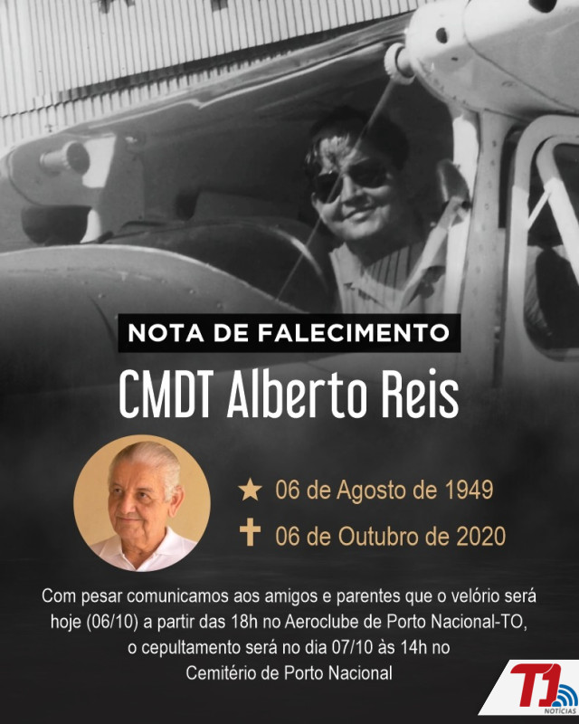 O comandante Alberto Reis, de 71 anos, ex-piloto de Siqueira Campos, faleceu nesta terça-feira, 6 de outubro, em Palmas, por complicações decorrentes de um câncer hepático.