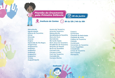 Com objetivo de beneficiar os cidadãos tocantinenses, o Tribunal de Contas do Estado (TCE/TO) realiza entre os dias 26 e 28 de junho, o Plantão do Orçamento Pela Primeira Infância com prefeitos dos 139 municípios, na sede do Instituto de Contas 5 de Outubro (Iscon). Conselheiros e técnicos da Corte vão auxiliar os gestores e suas equipes na alteração do orçamento público para que sejam implementadas políticas que atendam às crianças de 0 a 6 anos de idade.