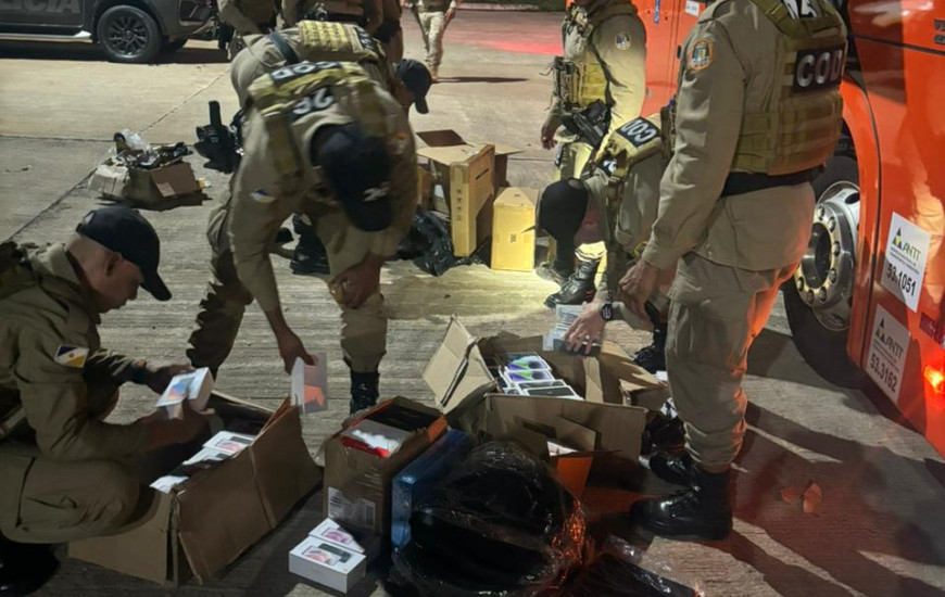 A operação, que contou com equipes do estágio supervisionado do I Curso de Operações de Divisas do BPMRED, da Polícia Militar do Tocantins, com apoio do Comando de Operações de Divisas da PMGO, levou à apreensão de uma grande quantidade de eletrônicos que eram transportados em um ônibus de transporte de passageiros, com direção à Palmas. As mercadorias estavam sob responsabilidade do motorista do veículo.