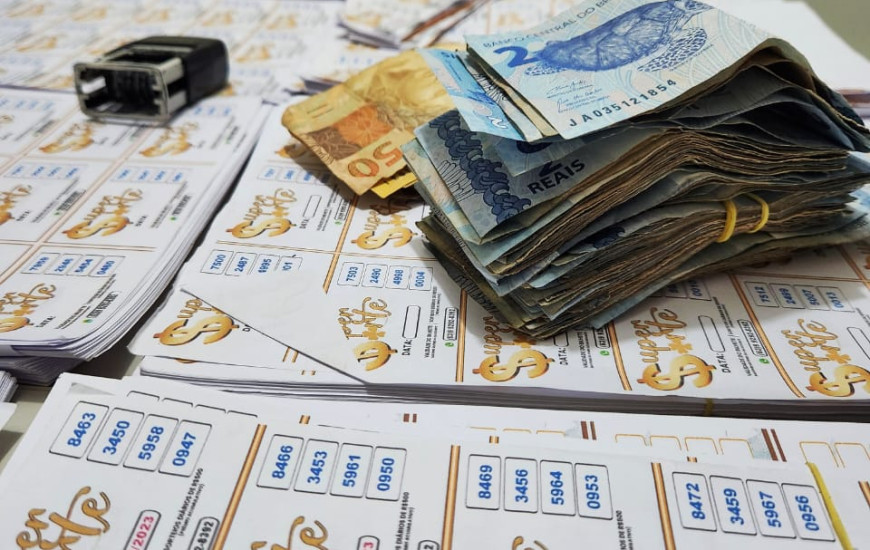 Durante o cumprimento da busca e apreensão, foram recolhidos centenas de bilhetes que ainda seriam vendidos, anotações sobre as vendas realizadas, carimbos, aparelhos de telefone celular, moedas e cédulas de dinheiro.