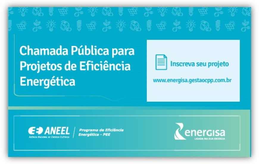 Os interessados em participar da chamada pública do Programa de Eficiência Energética da Energisa devem realizar o cadastro do projeto até as 17h desta quarta-feira (28/8). Órgãos públicos e clientes (residências, indústrias, comércios e serviços) podem participar. O investimento nas iniciativas apresentadas deve chegar a R$ 6 milhões.
