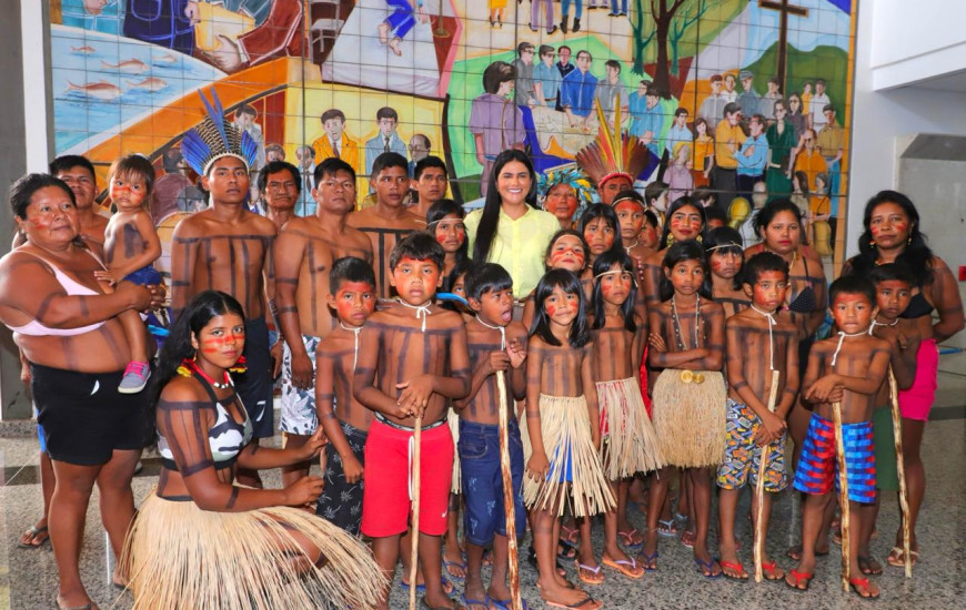 Em comemoração ao Dia dos Povos Indígenas, celebrado nesta sexta-feira, 19, a primeira-dama do Estado do Tocantins e secretária Extraordinária de Participações Sociais, Karynne Sotero, deu início ao projeto Portas Abertas e recebeu um grupo de adultos e crianças da etnia Xerente, de Tocantínia, no Palácio Araguaia Governador José Wilson Siqueira Campos.