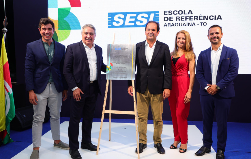 Uma solenidade seguida de visita guiada às instalações marcou a inauguração da primeira Escola SESI de Referência do Tocantins na noite desta quinta-feira, 30, em Araguaína. O presidente da Federação das Indústrias do Estado do Tocantins (FIETO) e do Conselho Regional do SESI Tocantins, Roberto Pires, o diretor de Operações do Departamento Nacional do SESI, Paulo Mól, o superintendente do SESI Tocantins, Fernando Ferreira e o governador do Estado em exercício, Laurez Moreira, descerraram a placa de inauguração da Escola SESI de Referência – Joaquim Sabino dos Santos – Marlon.
