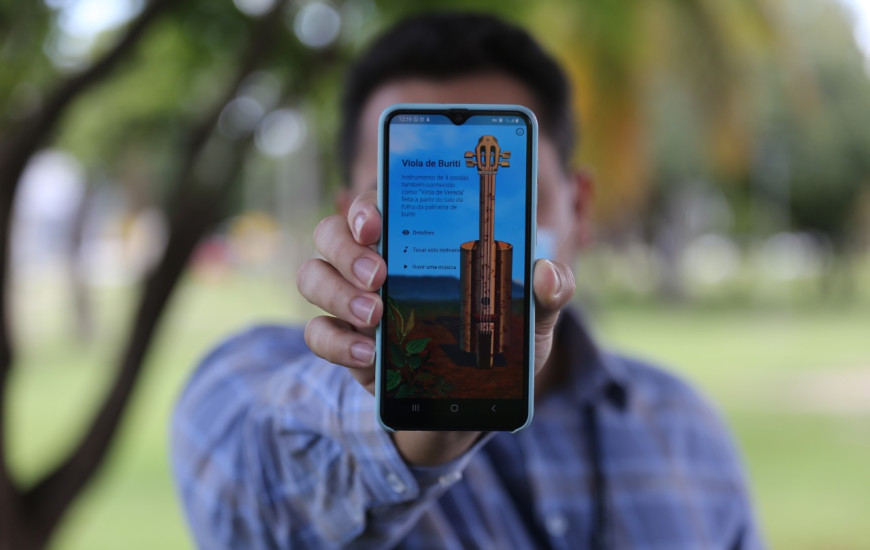 “O aplicativo traz um visual de uma vegetação típica encontrada no estado do Tocantins, com amplas serras, vegetação arbustiva e rios. A estética é voltada para a introdução do usuário e sua imersão nos contextos culturais. Os instrumentos são representados em formato 3D vetorizado, buscando uma correlação de proporções das medidas, mas ao mesmo tempo aplicando certa liberdade criativa para torná-los mais agradáveis para os mais diversos públicos”, explica o produtor.