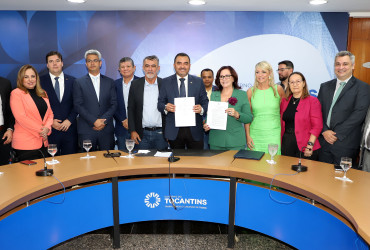 O governador Wanderlei Barbosa recebeu, na manhã desta terça-feira, 9, no Palácio Araguaia Governador José Wilson Siqueira Campos, representantes do sistema judiciário tocantinense, para sancionar a Lei Complementar Nº 153, que amplia o número de desembargadores no Tocantins, que passará de 12 para 20 magistrados, representando um aumento de oito cadeiras. O ato será publicado no Diário Oficial do Estado do Tocantins (DOE).