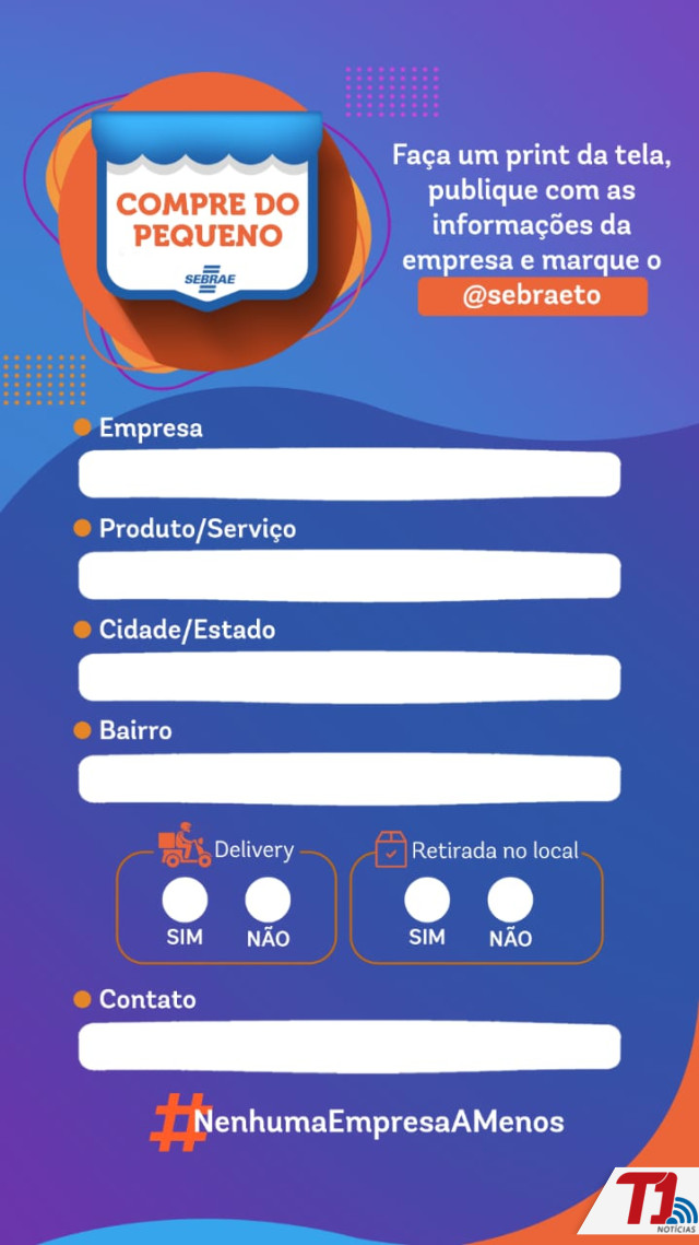 O Sebrae Tocantins lançou neste sábado, 21, a primeira etapa da campanha Compre do Pequeno. A iniciativa mapeará os pequenos negócios que continuarão prestando seus serviços no período de crise em decorrência das ações governamentais de prevenção ao coronavírus no Estado.