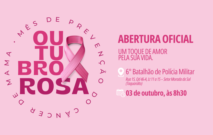 Com o tema Um Toque de Amor Pela Sua Vida, o Governo do Tocantins por meio da Secretaria de Estado da Mulher (SecMulher) promove, no próximo dia 03 de outubro, em Palmas, a abertura oficial da campanha Outubro Rosa. O evento, que visa conscientizar sobre a importância da prevenção e do diagnóstico precoce do câncer de mama e câncer de colo do útero, contará com uma vasta programação de palestras, atividades culturais e serviços de saúde para a comunidade.