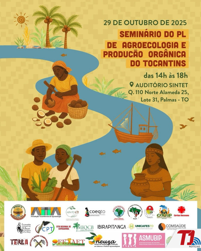 A Articulação Tocantinense de Agroecologia (ATA) realiza nesta quarta-feira, 29 de outubro, o Seminário do PL de Agroecologia e Produção Orgânica do Tocantins. O encontro tem o objetivo de apresentar à sociedade e às autoridades do estado a proposta construída coletivamente pelos movimentos sociais, que visa fortalecer a produção de alimentos agroecológicos e orgânicos, conectando práticas sustentáveis ao bem-estar social e ambiental.