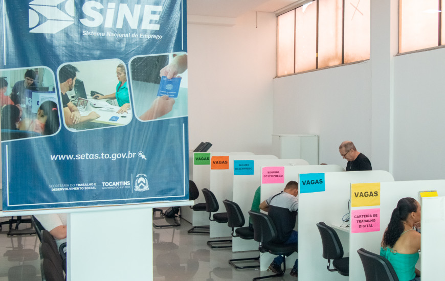 O Sistema Nacional de Emprego (Sine) gerido pelo Governo do Tocantins, por meio da Secretaria Estadual do Trabalho e Desenvolvimento Social (Setas), disponibiliza 985 vagas de emprego nesta quarta-feira, 7. São 972 vagas para o Quadro Geral e 13 para Pessoa com Deficiência, distribuídas nas 12 unidades do Sine estadual. Além das vagas do Sine Tocantins, o Sine de Palmas realizará nesta quinta-feira, 8, seleção para preenchimento de 52 vagas para duas redes renomadas de atacadistas na Capital. São vagas para Repositor de loja, Operador de caixa, Empacotador, Repositor de frios, Repositor de loja, Fiscal de prevenção e perdas, Auxiliar de depósito, e Auxiliar de informática. Para participar é só comparecer, munido dos documentos pessoais ao Sine de Palmas, na Avenida Teothônio Segurado, Quadra ACSU SO 40 (401 Sul), Conjunto 1, Lote 17, Empresarial Gold Star.