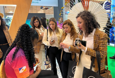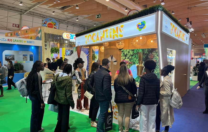 O estande do Tocantins tem sido um dos destaques do pavilhão brasileiro logo no primeiro dia da feira. Com uma estrutura acolhedora e experiências culturais imersivas, o espaço reúne seis coexpositores, sendo cinco agências de viagens e operadoras de turismo receptivo e um meio de hospedagem e atrativos turísticos, oferecendo uma visão completa do potencial turístico do Estado.