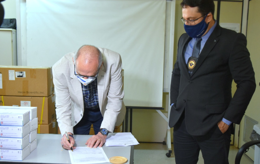 Delegado da Receita Federal do Brasil e auditor fiscal, Ricardo Wagner Magalhães Gomes informou que como os demais órgãos federais, a Receita também está sensível ao momento que o país passa, buscando todas as formas para minimizar os impactos da pandemia. "Esta doação é fruto de uma apreensão de uma importação irregular realizada no porto de Itajaí/SC, ao todo foram apreendidos mais de 400 mil testes que estão sendo distribuídos pelo país. Tocantins foi contemplado com 9 mil testes, que já passaram por exames de qualidade e homologação da Fundação Oswaldo Cruz (Fiocruz) no Rio de Janeiro, que atestou a qualidade do produto", disse o delegado.