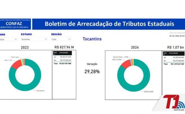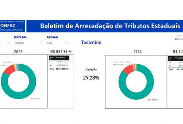 O Tocantins registrou um crescimento positivo em sua receita tributária nos primeiros dois meses deste ano. O percentual foi de 29,28% comparado a 2023, segundo o Boletim de Arrecadação de Tributos Estaduais, documento do Conselho Nacional de Política Fazendária.