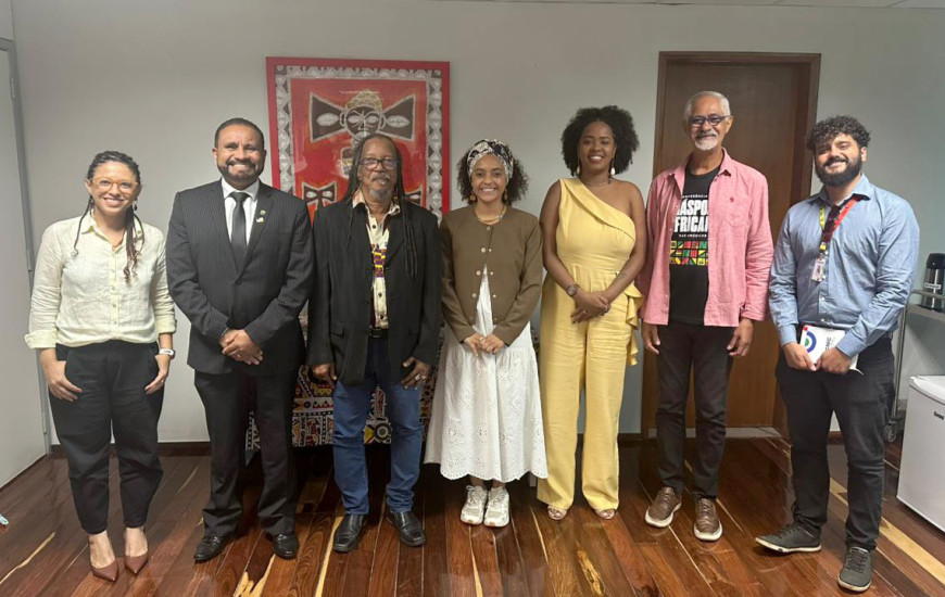 A reunião também contou com a participação do presidente da FCP, João Jorge; da diretora de Políticas para a Promoção da Igualdade Racial da Seir, Bianca Pereira; da articuladora estadual do projeto, Julliana Ribeiro; dos diretores da FCP, Fernanda Thomas e Nelson Mendes; e da chefe da Assessoria de Participação Social e Diversidade do Ministério da Cultura, Mariana Braga.