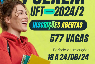 O novo processo seletivo da Universidade Federal do Tocantins (UFT), o PSEnem visa selecionar 577 candidatos, distribuídos em 29 cursos, dos cinco Câmpus da UFT, por meio das notas do Enem. As inscrições começam na terça-feira, 18, e seguem até o dia 24 de junho. A previsão de entrada é no segundo semestre de 2024, no mês de agosto.