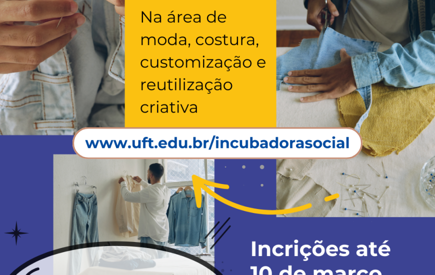A Incubadora Social da Universidade Federal do Tocantins (UFT) seleciona dois grupos para a pré-incubação de projetos sociais voltados à moda, costura, customização e reutilização criativa. O processo seletivo simplificado, regido pelo edital nº 56/2026 da Pró-Reitoria de Extensão (Proex), ocorre por meio de entrevistas com os interessados.